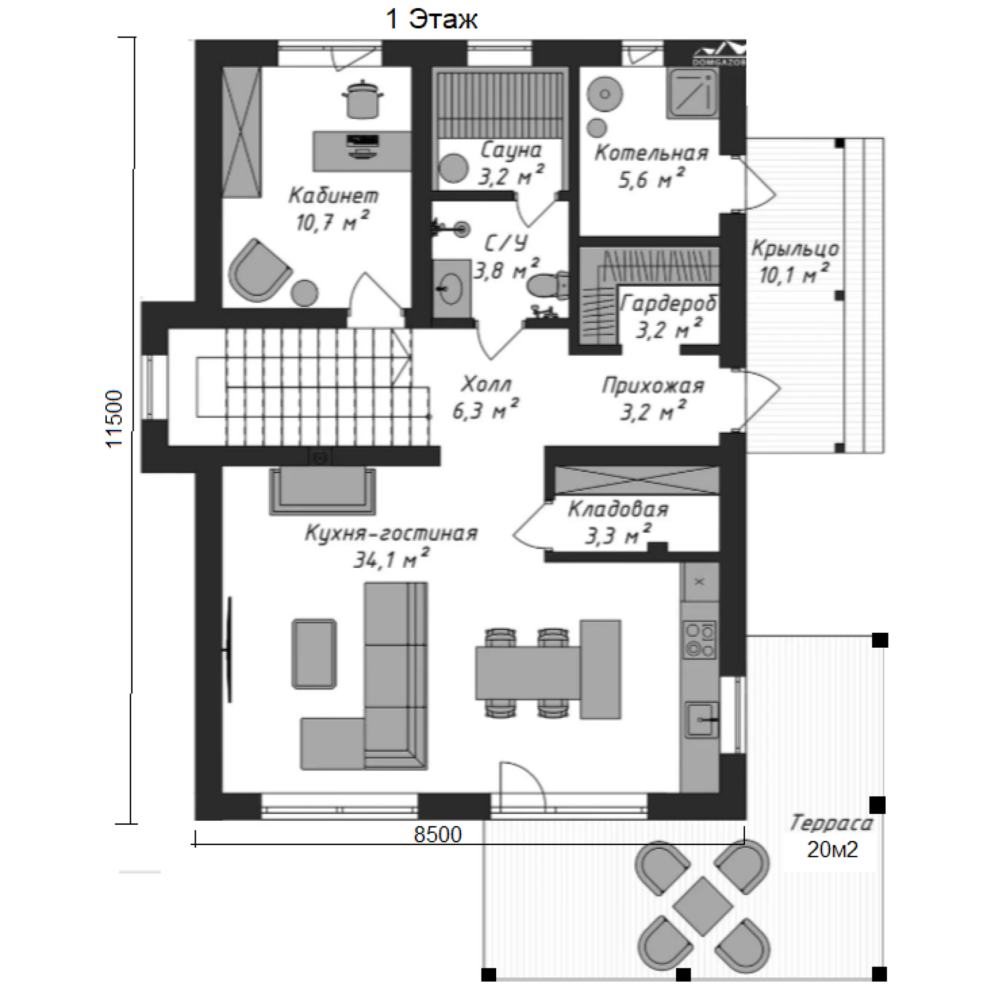 - Стены: газоблок 400 мм.